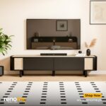 - Melong TV Cabinet offers high durability, easy maintenance, customizable wood finishes, storage, making it a long-lasting and versatile.