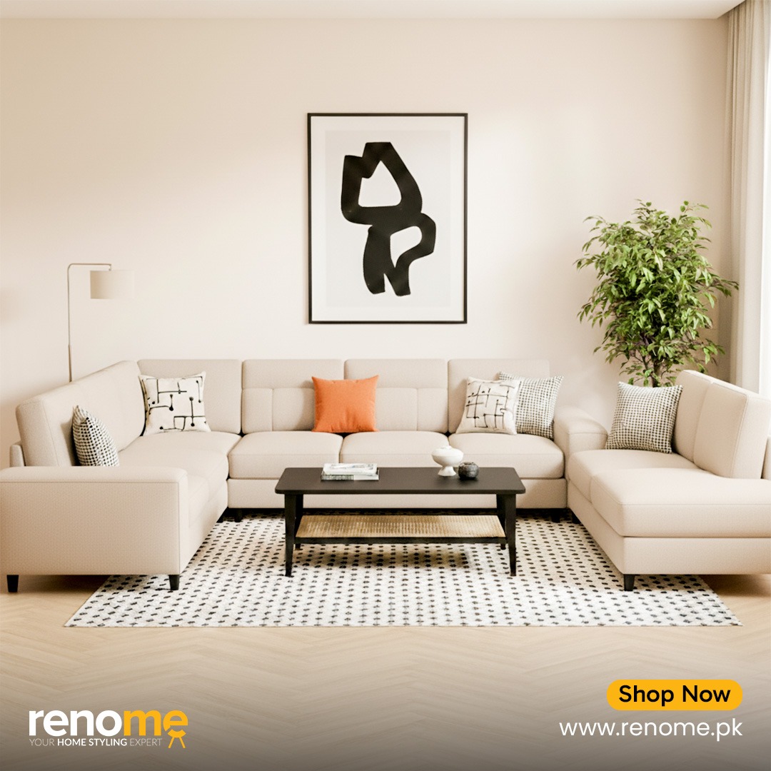 - Renome’s green royal sofa boasts a durable Kikar wood frame, Master molty foam cushioning, and a 10-year warranty and ensuring both reliability and comfort.