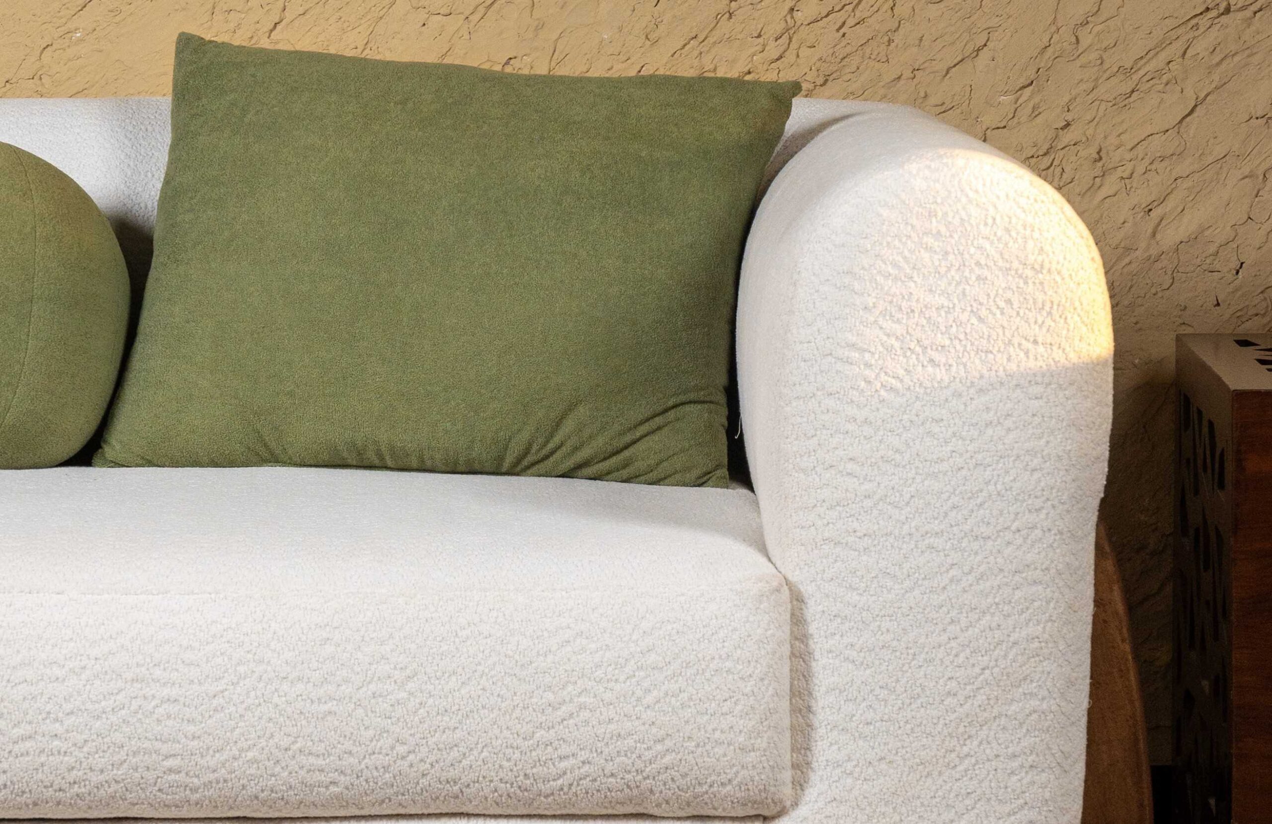 Soft textured upholstery that feels warm to the touch and visually lightens the space